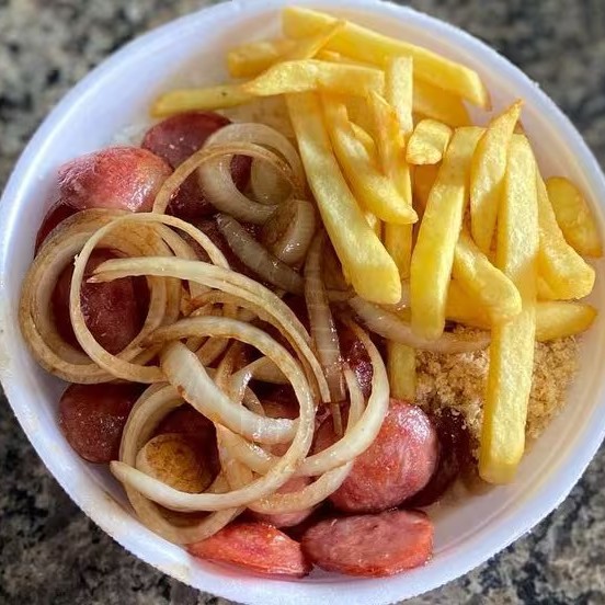 Arroz ,Feijao ,Farofa E Batata Frita Com Omelete Simples