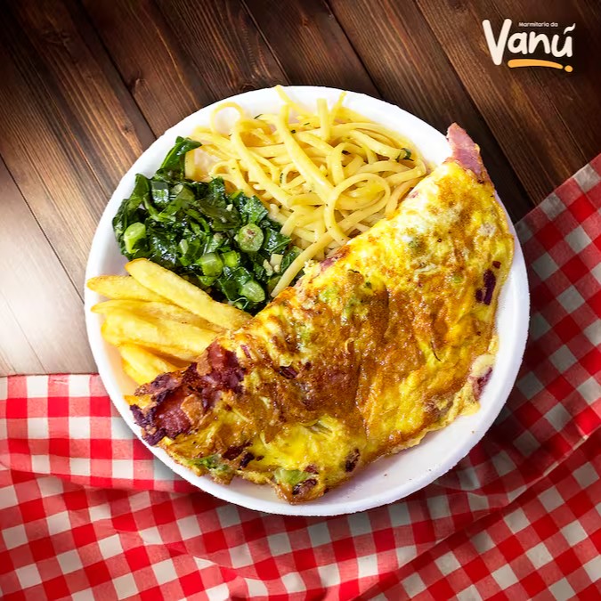 Omelete de Bacon, Brócolis, Queijo e Alho Frito, Arroz, Feijão, Macarrão e mais 2 do Dia!