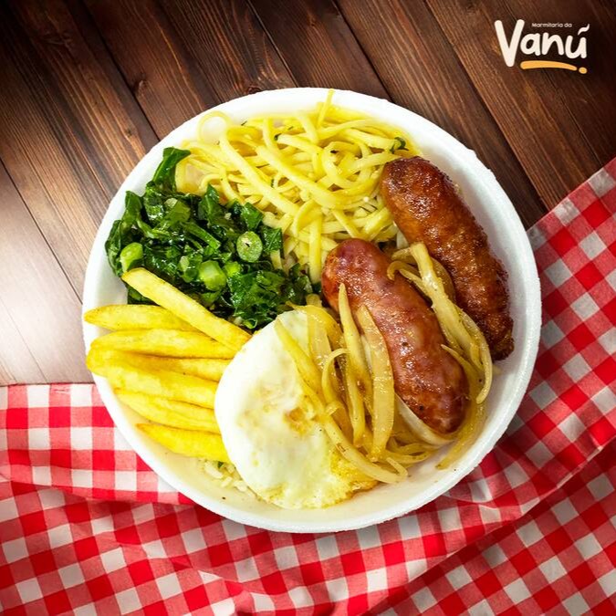 Linguiça Acebolada com Ovo, Arroz, Feijão, Macarrão e mais 2 do Dia!