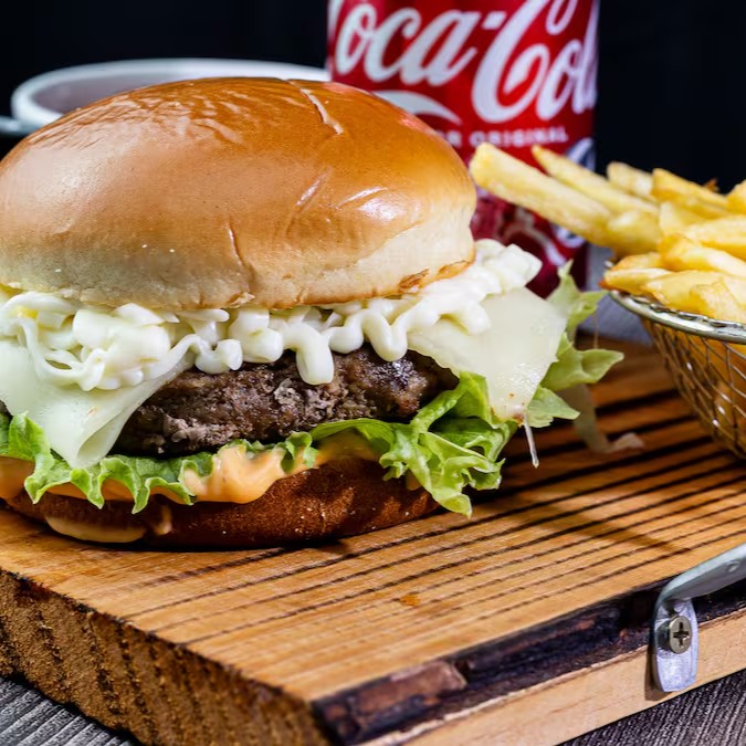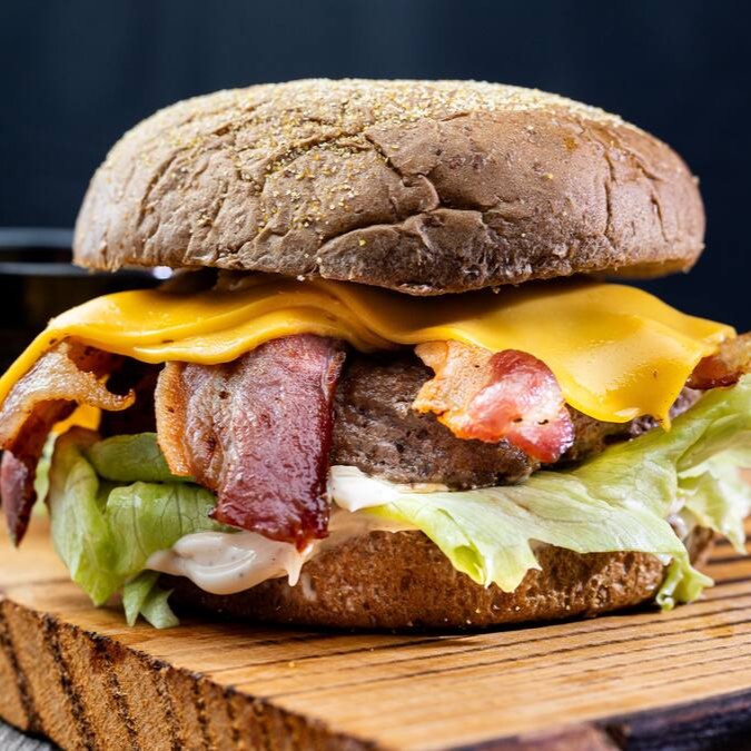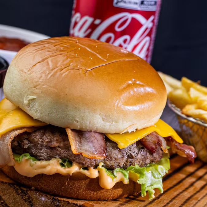 Delicioso Hambúrguer Angus de 200 g, coberto com aquele Cheddar de Qualidade, recheado com Bacon Suculento e Crocante. Isso tudo envolvido em um Pão Australiano delicioso com Molho Defumado e Alface Americano Fresquinho e Crocante. Uma Deliciaaaaa