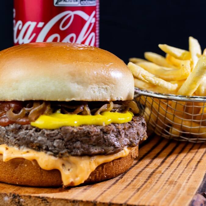Delicioso Hambúrguer Angus de 200 g, coberto com Ketchup e Mostarda de Qualidade, com aquela Cebola Gratinada Regada ao Shoyu. Envolvido em um Pão Brioche delicioso com Molho Especial. Uma Deliciaaaaa
