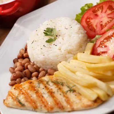 Deliciosa marmita de Filé De Frango grelhado suculento e delicioso,,, Acompanha Arroz / Feijão / Farofa / Fritas