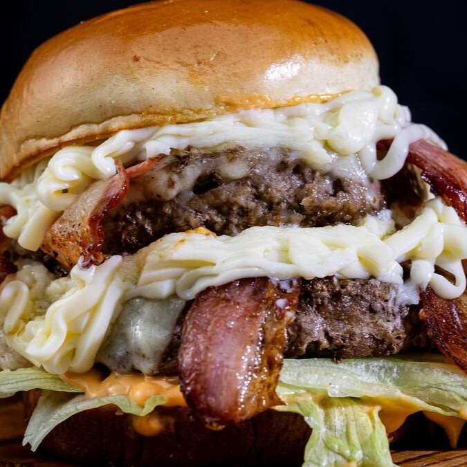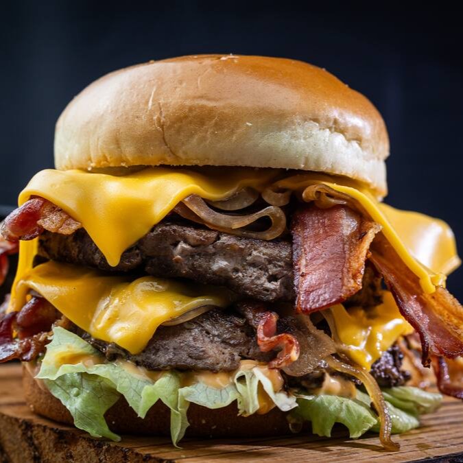 2 Deliciosos Hambúrguer Angus de 200 g, coberto com aquele Cheddar de Qualidade, recheado com Bacon Suculento e Crocante, com aquela Cebola Gratinada Regada ao Shoyu. Isso tudo envolvido em um Pão Brioche delicioso com Molho Especial e Alface Americano Fresquinho e Crocante. Uma Deliciaaaaa