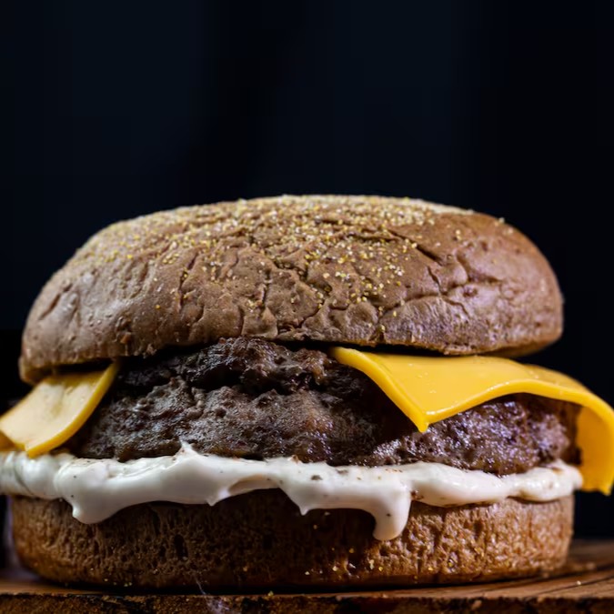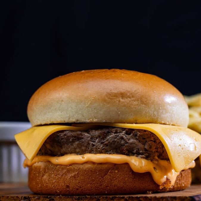 Delicioso Hambúrguer Angus de 200 g, coberto com aquele Cheddar de Qualidade. Envolvido em um Pão Australiano delicioso com Molho Defumado. Uma Deliciaaaaa