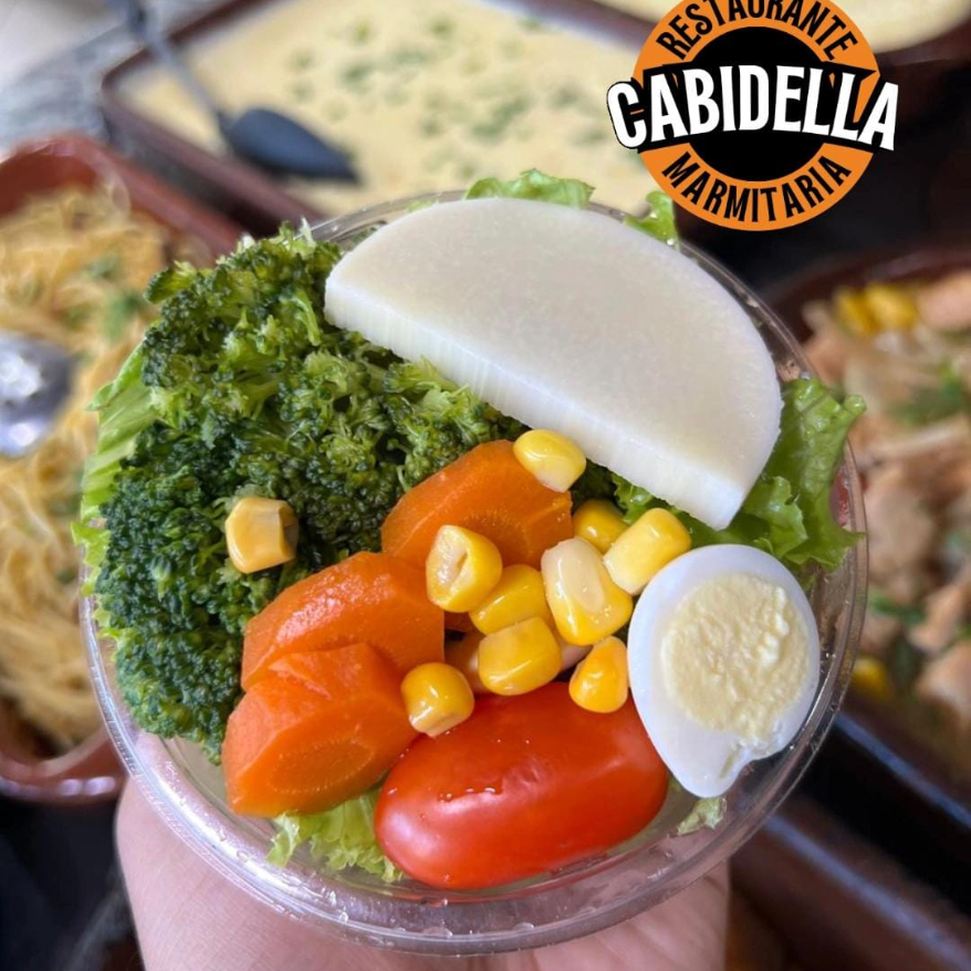Marmitex com saladas diversas.