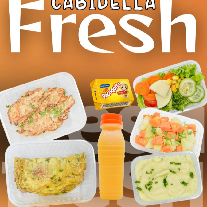 KIT FRESH OMELETE RECHEADO COM PRESUNTO E QUEIJO,SUCO DE LARANJA, PAÇOCA E SALADA. PODENDO ESCOLHER ENTRE PURÊ DE BATATA OU LEGUMES.