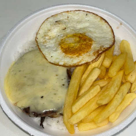 Acompanha Arroz, Feijão, Batata Frita, Ovo Frito e Hamburguer
