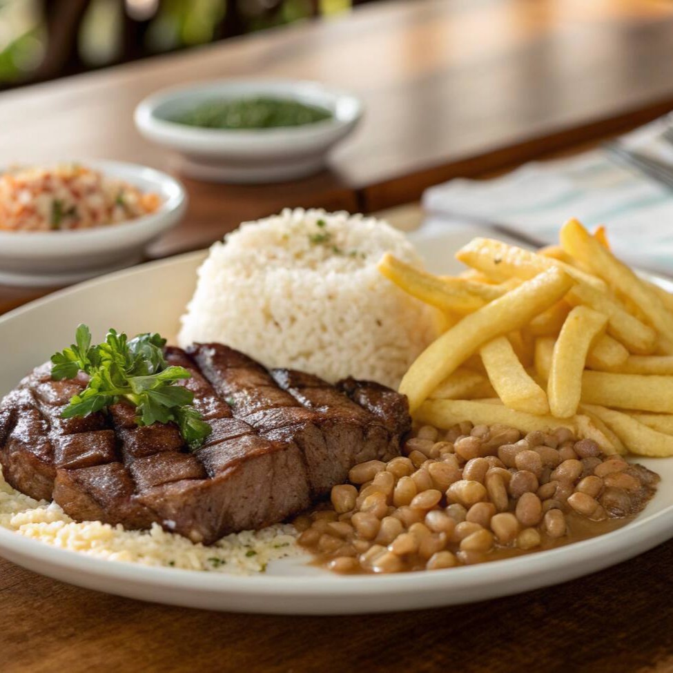 Acompanha: Arroz soltinho, feijão e batata frita