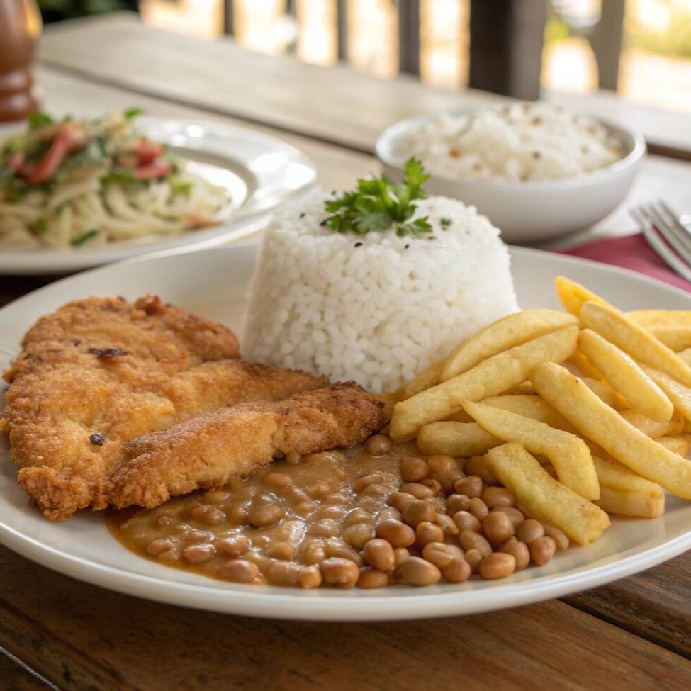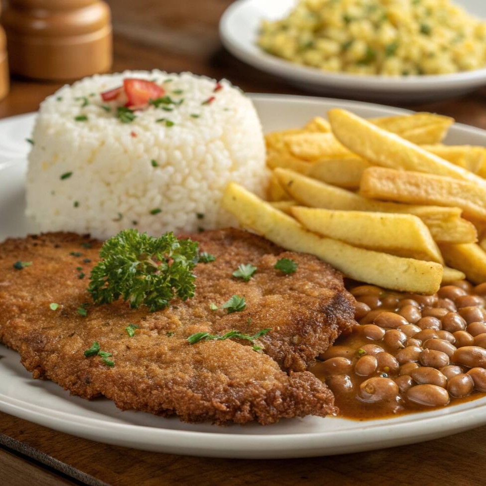 Acompanha: Arroz soltinho, feijão, batata frita, farofa