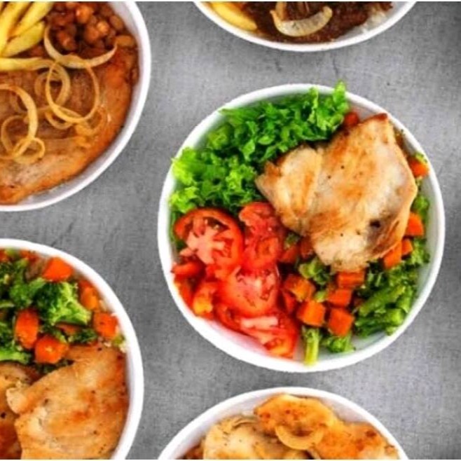 Arroz , feijão , uma opção de carne e duas opções de guarnições a sua escolha. Decorado com cheiro verde e pimenta biquinho.
