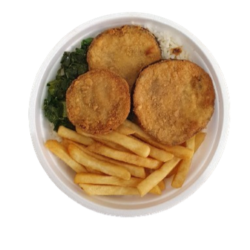 Arroz,feijão deliciosa beringela a milanesa e fritas (vegana)