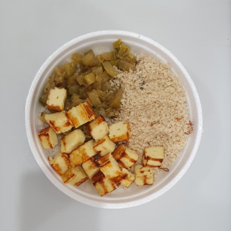 arroz, feijão, queijo coalho e 2 guarnição a sua escolha vegetariana