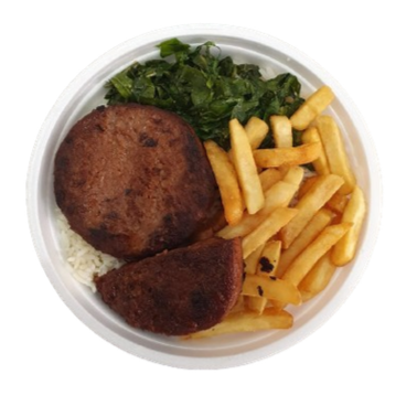 Arroz,feijão deliciosa proteína vegetal e fritas (vegana)