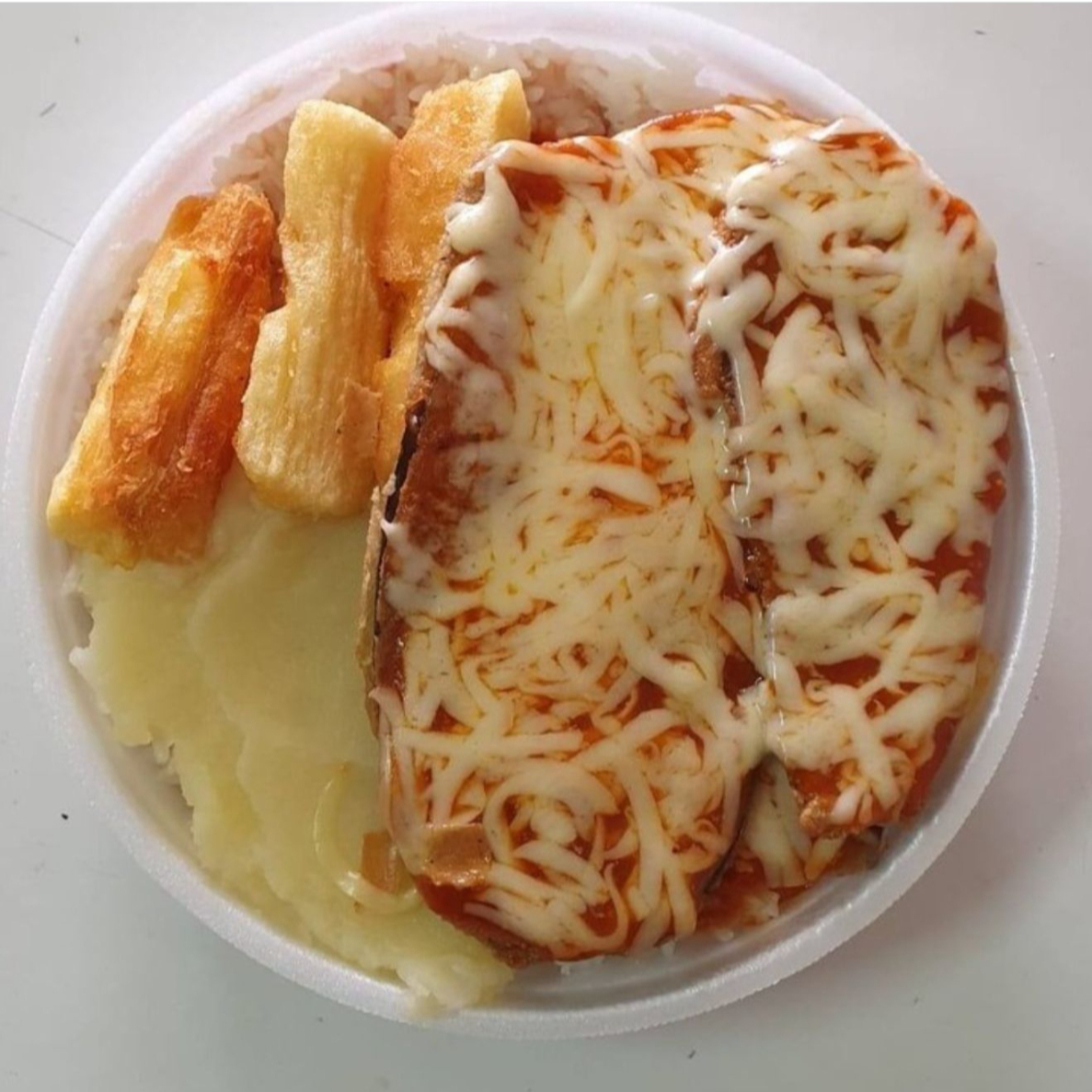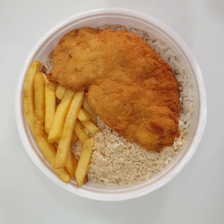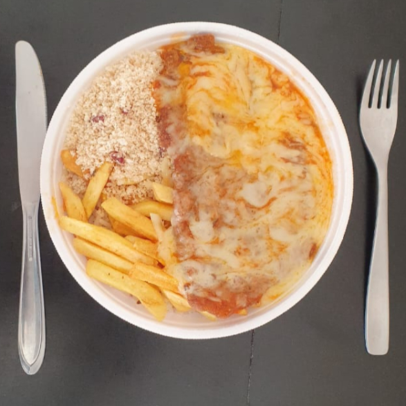 Arroz,feijão delicioso frango a Parmegiana e fritas
