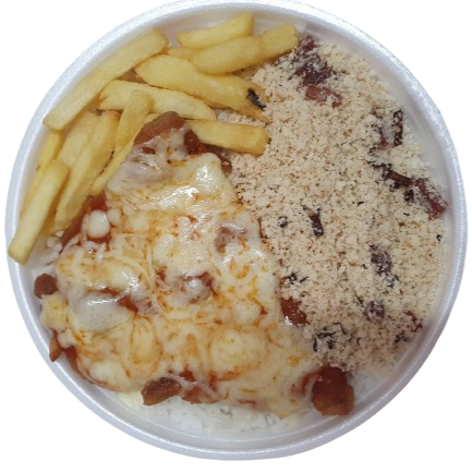 arroz, feijão, strogonoff de carne+ dois acompanhamento