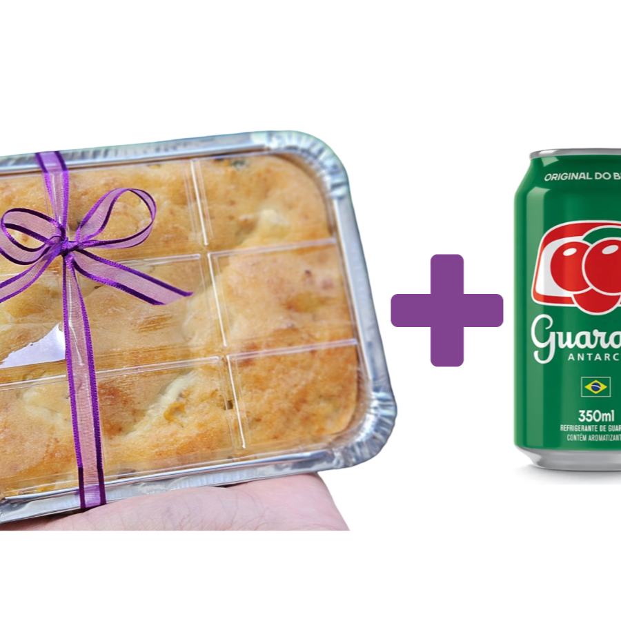 Guaraná Antartica 350ml + Marmita 500ml de Torta recheada com frango desfiado, milho e requeijão cremoso, feito com tempero caseiro e massa levinha, perfeita para qualquer hora do dia.