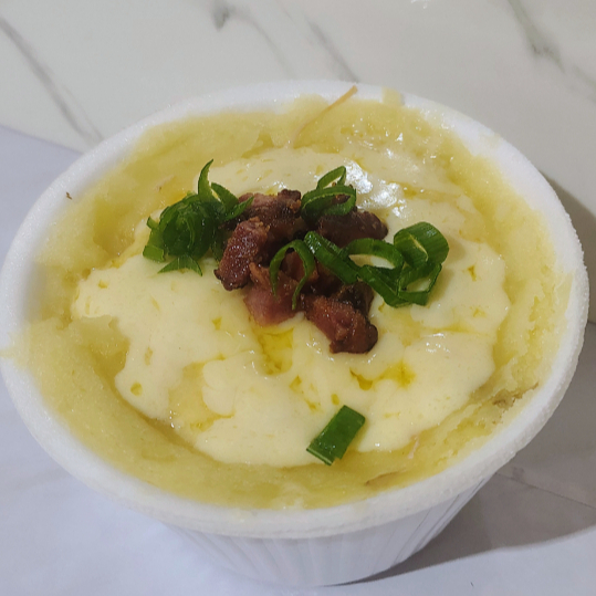 Batata de primeira, frango com creme de milho, mussarela, cheiro verde
