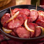 Bata de primeira, calabresa ao molho, mussarela, bacon, cheiro verde