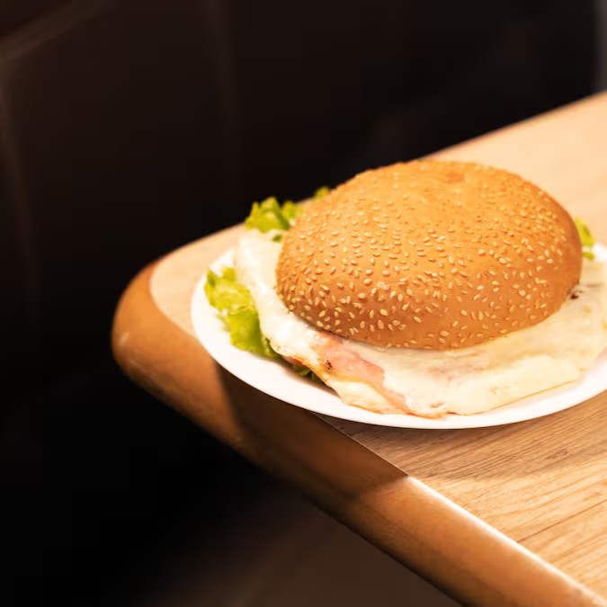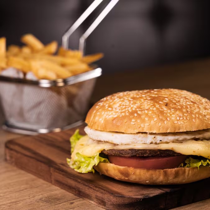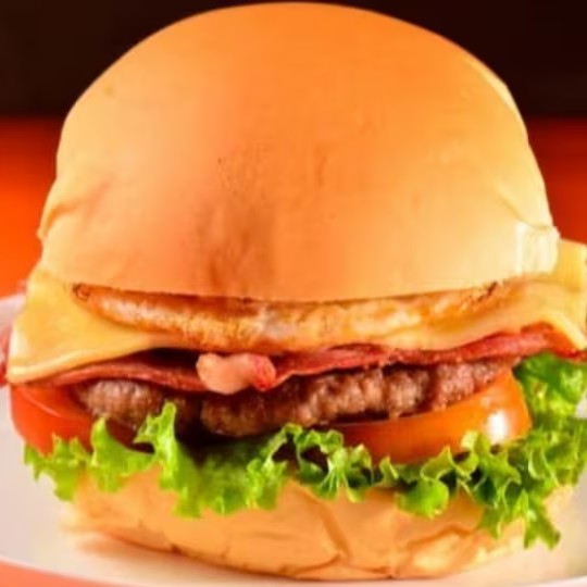 Hamburguer, ovo, queijo, salada