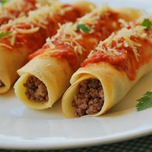 Promoção Marmita M: Panqueca De Carne Moida Com Queijo