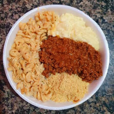 Marmita: Arroz, Feijão, Macarrão, Carne Moida Com Azeitona, Pure de Batata e Farofa!
