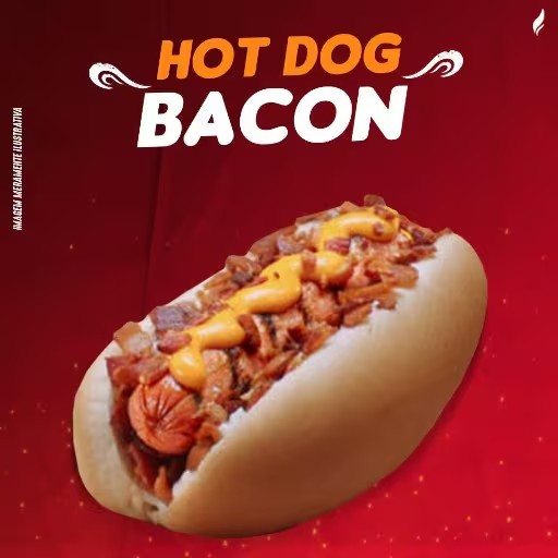 Hot Dog Bacon: Pão, Salsicha, Milho, Bacon, Vinagrete, Pure, Batata Palha Ketchup e Maionese!