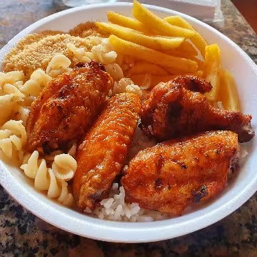 Marmita M: Arroz, Feijão, Macarrão, Frango a Passarinho, Batata Frita, Farofa!