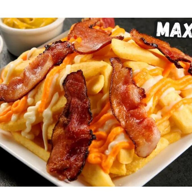 650 g de batata coberta com queijo, bacon, Catupiry e cheddar.