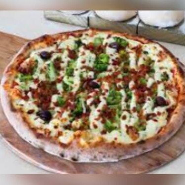 Pizza de 8 pedaços com base de molho de tomate caseiro, pedaços de brócolis coberto com requeijão cremoso e bacon!