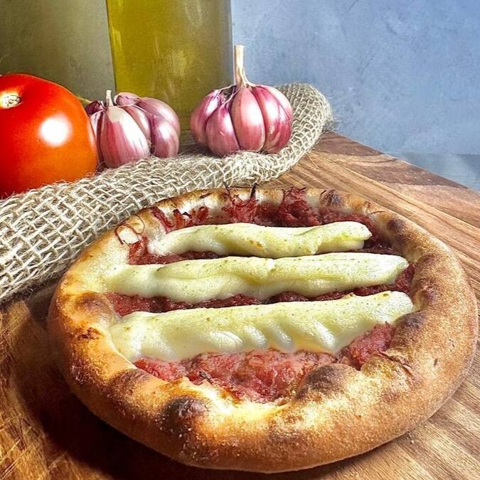 Pizza de 8 pedaços, com base de molho de tomate caseiro, calabresa fatiada, cebola coberto com requeijão cremoso e azeitonas!