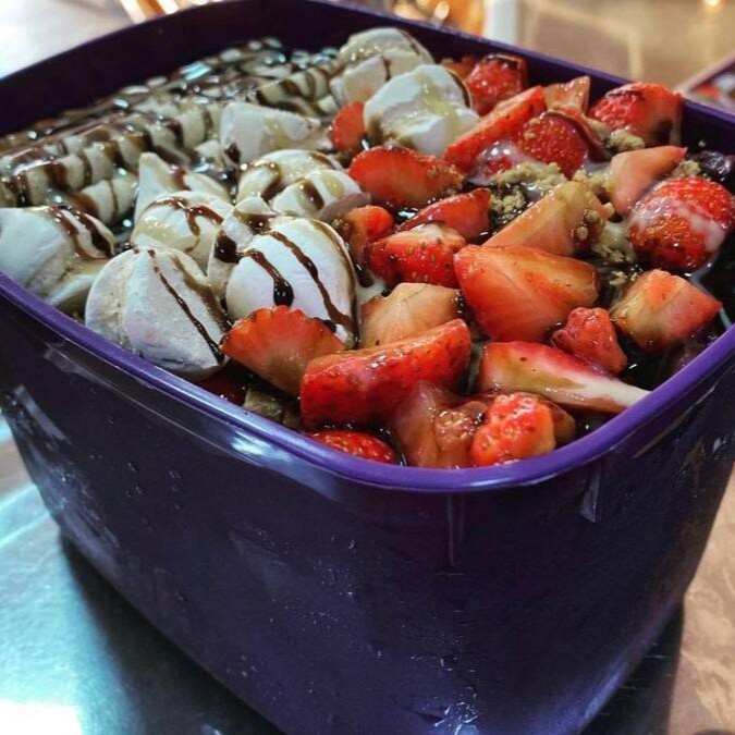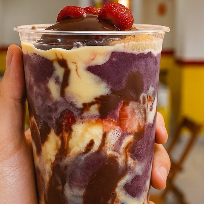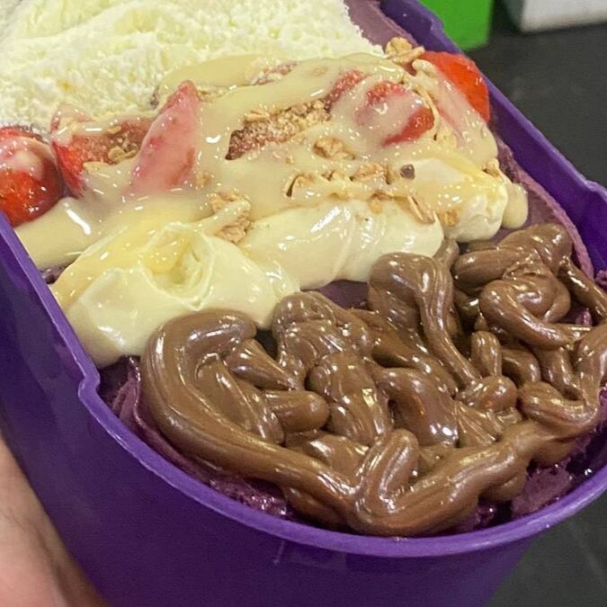 Delicioso e querido por nossos clientes , queridinho açai com morango , leite condensado , avelã e leite em pó , serve bem 1 pessoa .