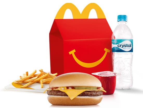 O McLanche Feliz acompanha sanduíche cheeseburger com tomatinho ou McFritas como acompanhamento, uma refrescante bebida e danoninho de morango como sobremesa. Brinquedo sujeito a disponibilidade de estoque por restaurante. Confira informações nutricionais