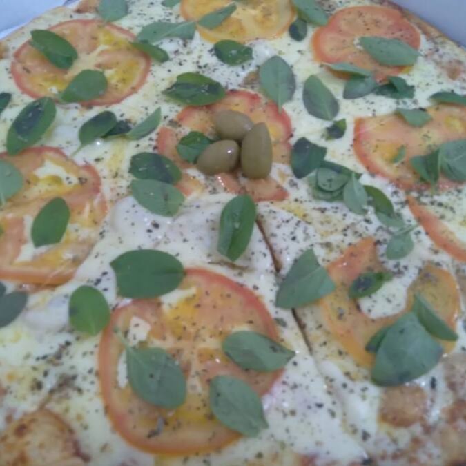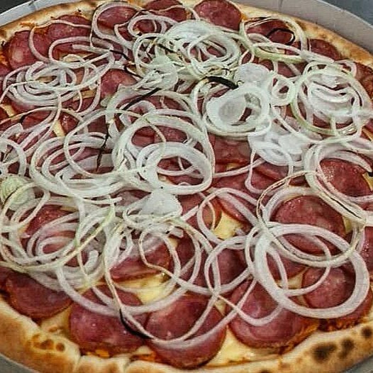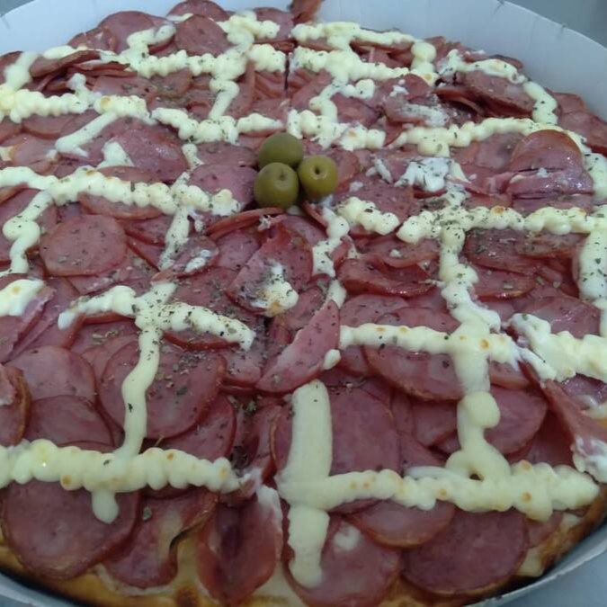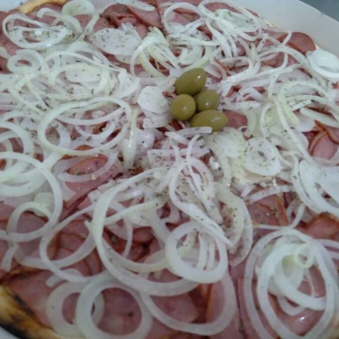 Ingredientes: Calabresa, cebola, azeitonas e Orégano.
