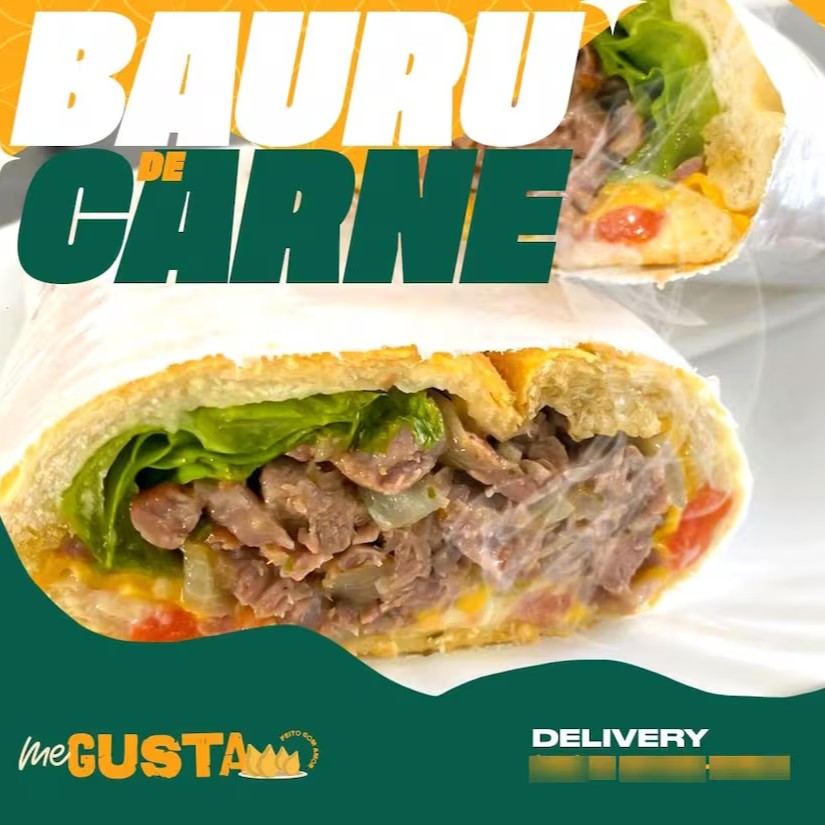 180 gramas de carne, queijo, Catupiry, bacon, tomate, cebola, alface no pão baguete