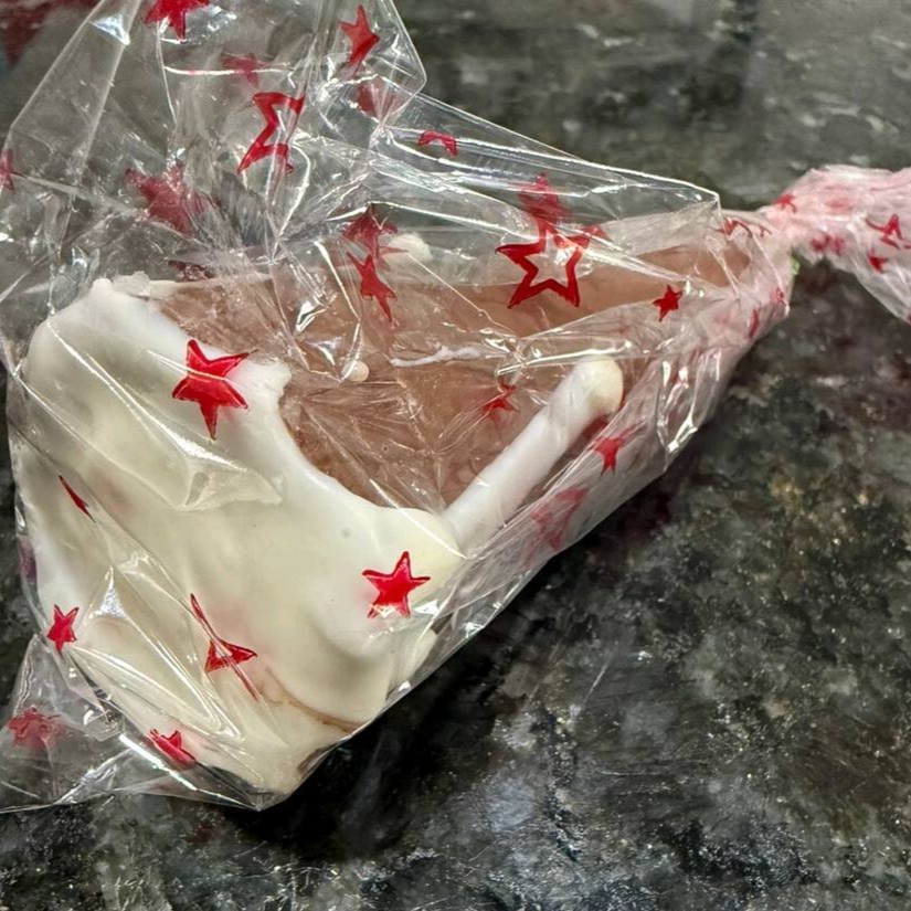 Recheado com chocolate branco e uma fatia de queijo