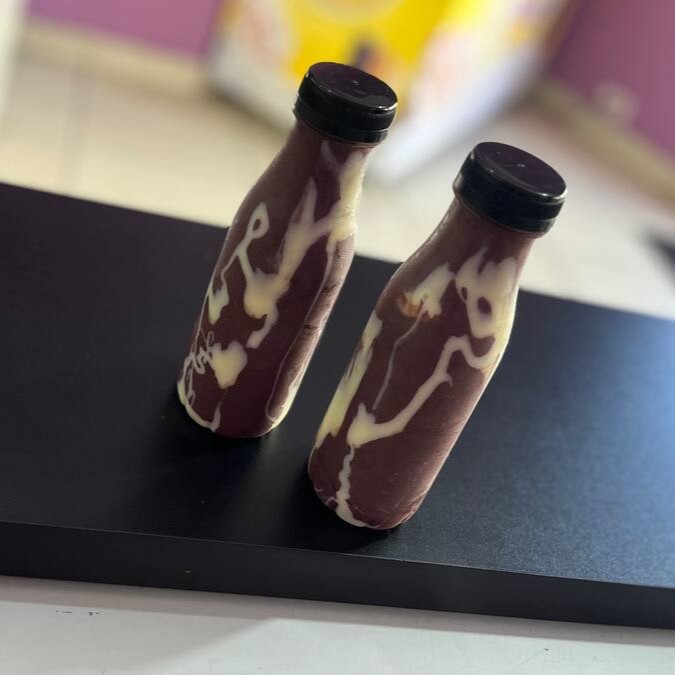 Um delicioso açaí batido na garrafinha de 300ml com leite em pó + leite condensado + paçoca .