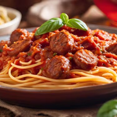 Espaguete delicadamente envolto em um molho vermelho da casa, complementado por suculentas rodelas de linguiça toscana, finalizado com queijo parmesão, criando uma combinação irresistível de sabores intensos e texturas impecáveis. Uma verdadeira explosão de prazer gastronômico que une tradição e sofisticação em cada garfada! Buon Appetito!