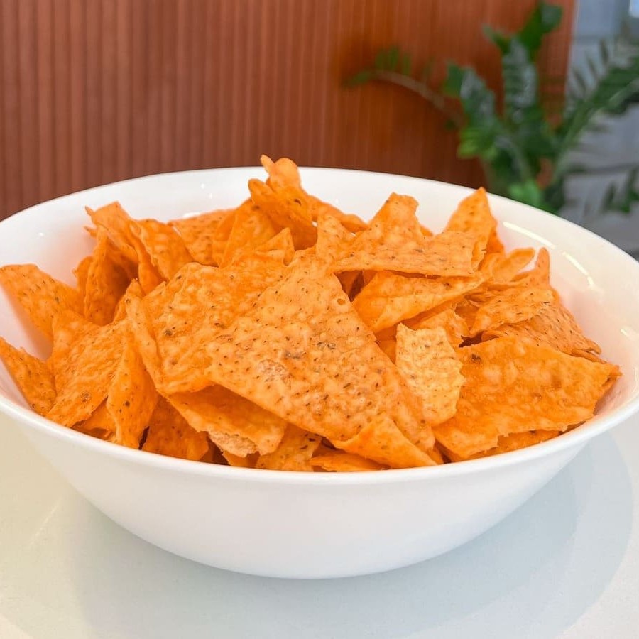 Frango Desfiado Temperado, Ovo de Codorna, Arroz Integral, Espaguete de Abobrinha, Cream Cheese, Manga, Chips de Batata Doce, Chips de Banana, Castanha de Caju, Mostarda e Mel, Azeite Trufado e Cebola Roxa.