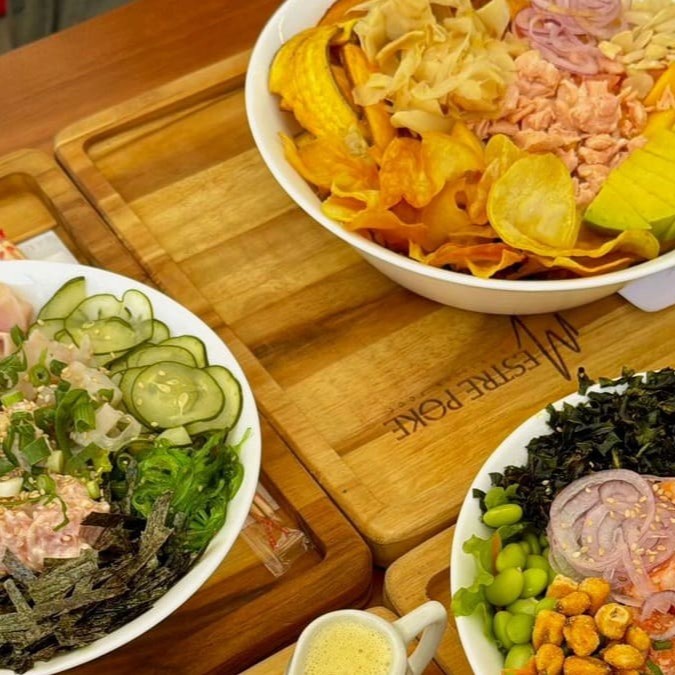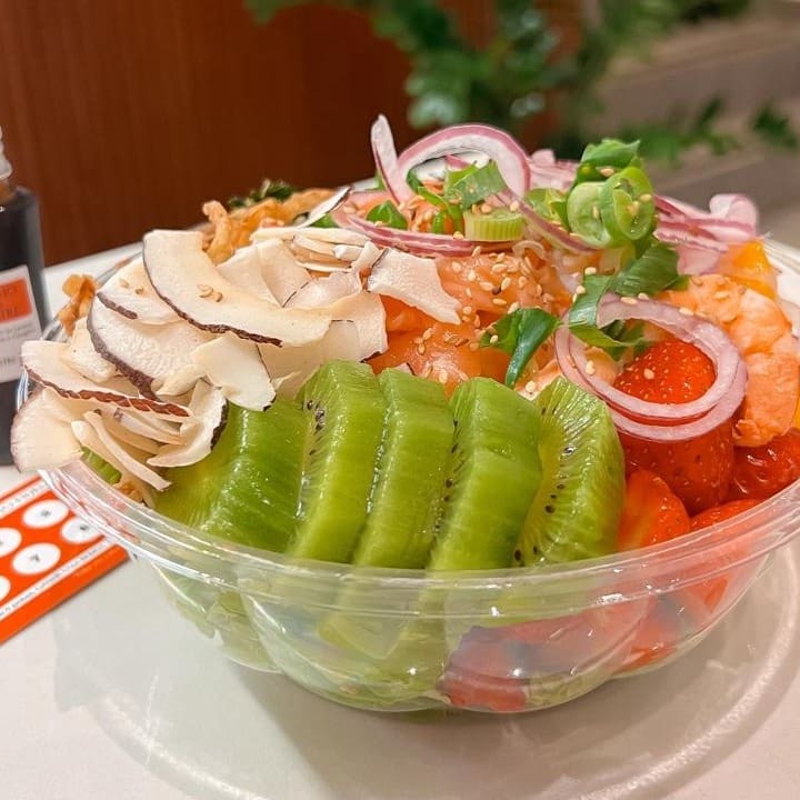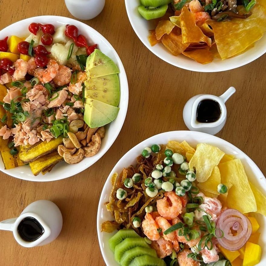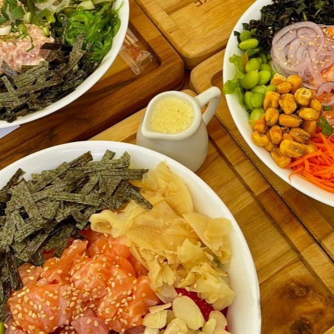 Delicioso poke preparado com salmão fresco ou camarão na manteiga, grelhado no ponto certo para garantir sabor e suculência. Acompanha arroz fresquinho, legumes selecionados, frutas, vegetais e molhos especiais, formando uma combinação equilibrada, leve e irresistível.