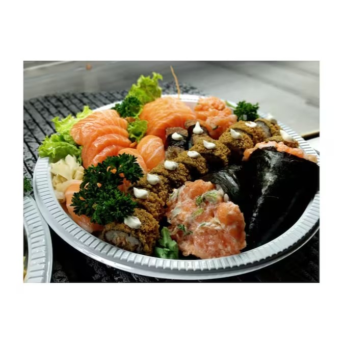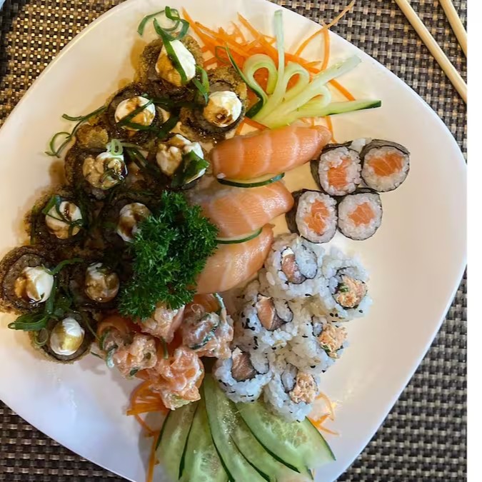 10 hot roll, 6 uramakis variados, 3 niguiri, 4 luizinho, 4 hossomaki.