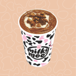 Milkshake feito com sorvete de baunilha, com borda de Recheio Moça Caramelo Salgado, batido com doce de leite e biscoito Tostines Especiarias, finalizado com pedacinhos de biscoito Tostines Especiarias no topo.