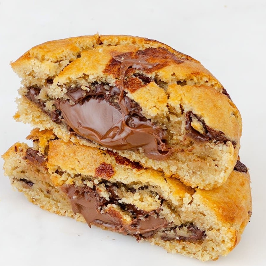 Cookie de massa de baunilha com generoso recheio de Nutella.