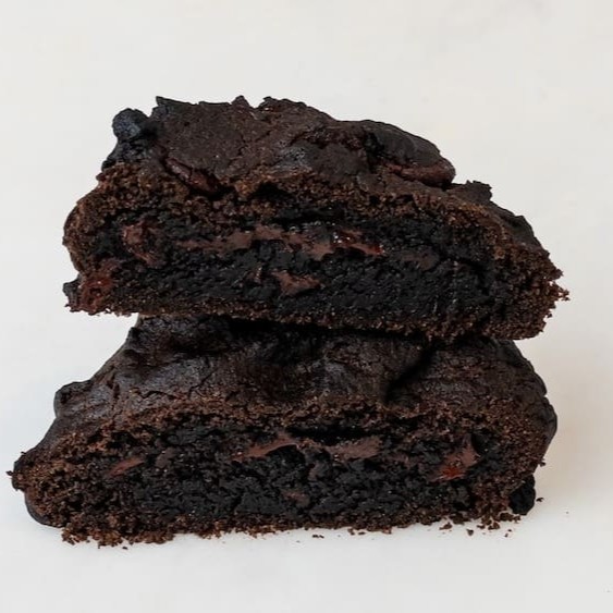 Cookie de massa de chocolate com gotas de chocolate meio amargo.