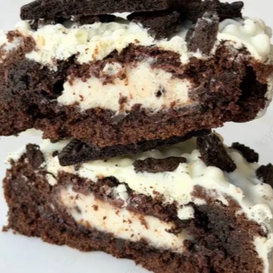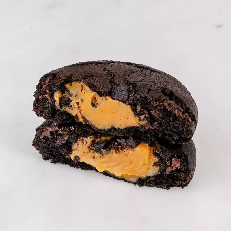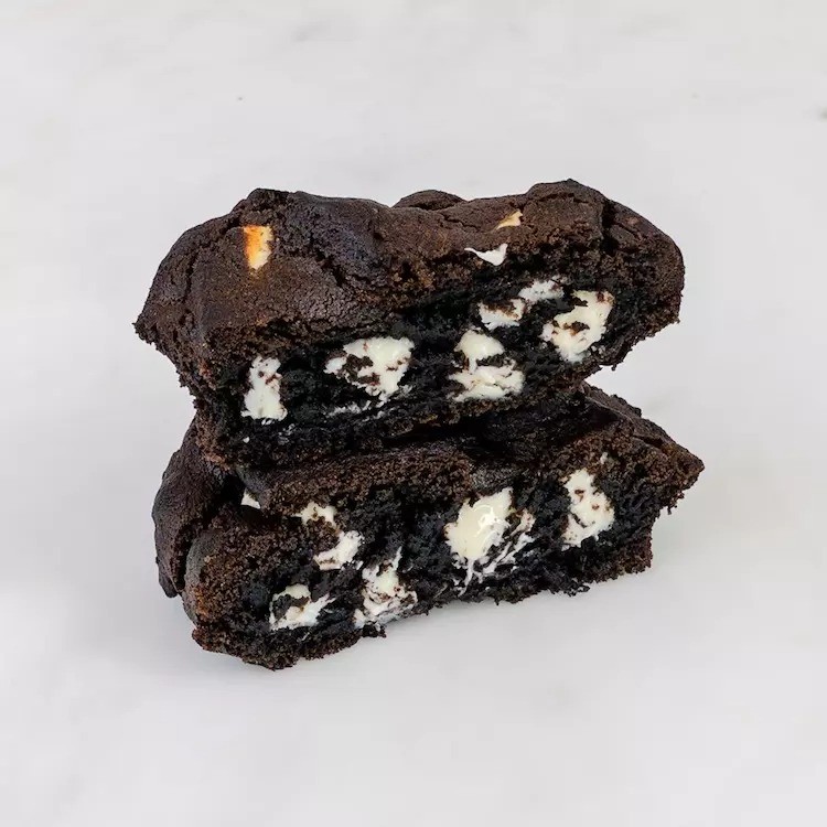 Cookie de massa de chocolate recheado com creme branco de OREO®, finalizado com chocolate branco com crocantes e crumbles de OREO®.