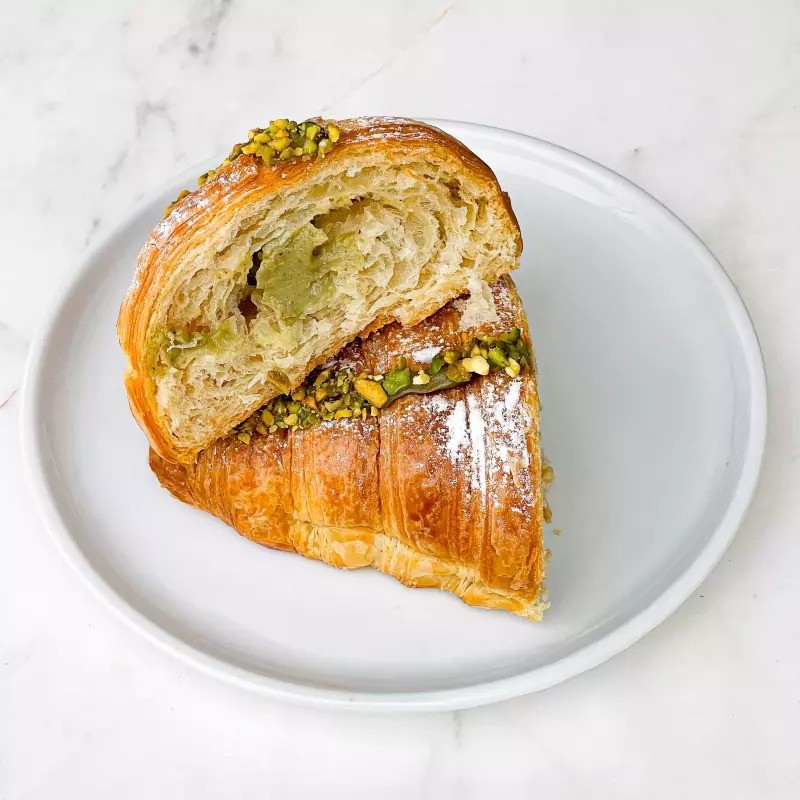 Croissant recheado com creme de pistache artesanal.