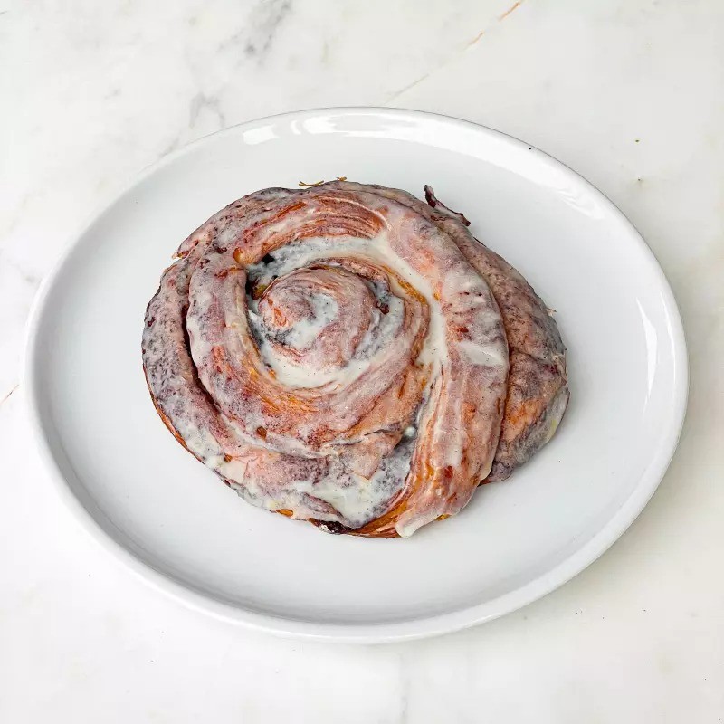 Cinnamon Roll feito a partir da nossa massa de Croissant envolvido com canela e finalizado com glassagem de laranja.
