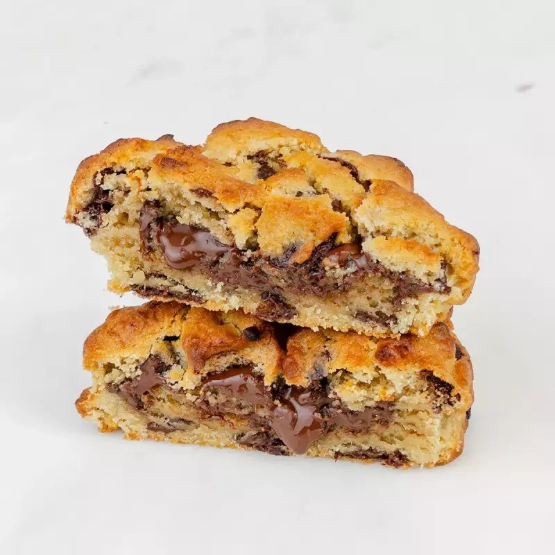 Cookie chocolate com gotas de chocolate meio amargo. Esse é um cookie 0% lactose e 100% vegano.