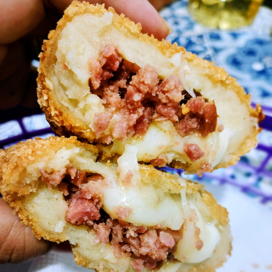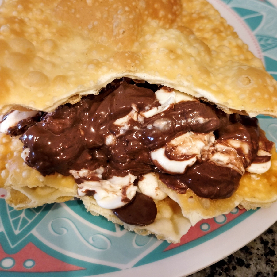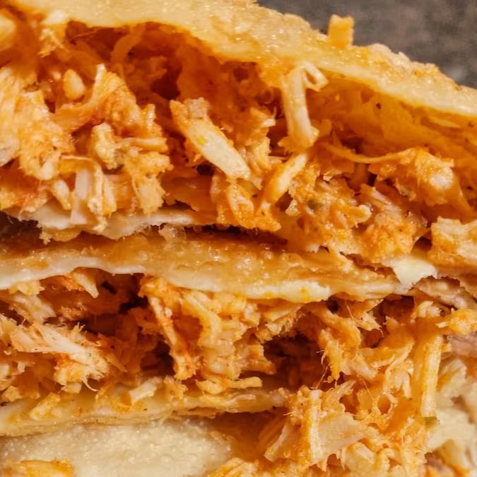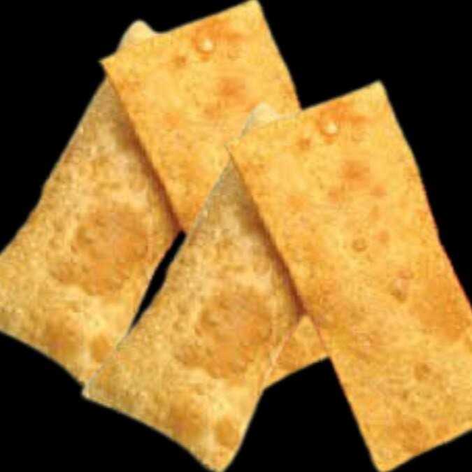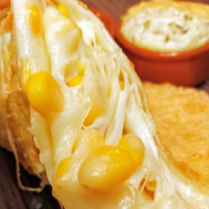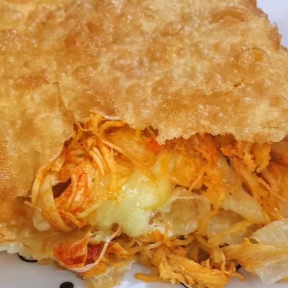 Massa frita crocante, com frango desfiado suculento e requeijão cremoso