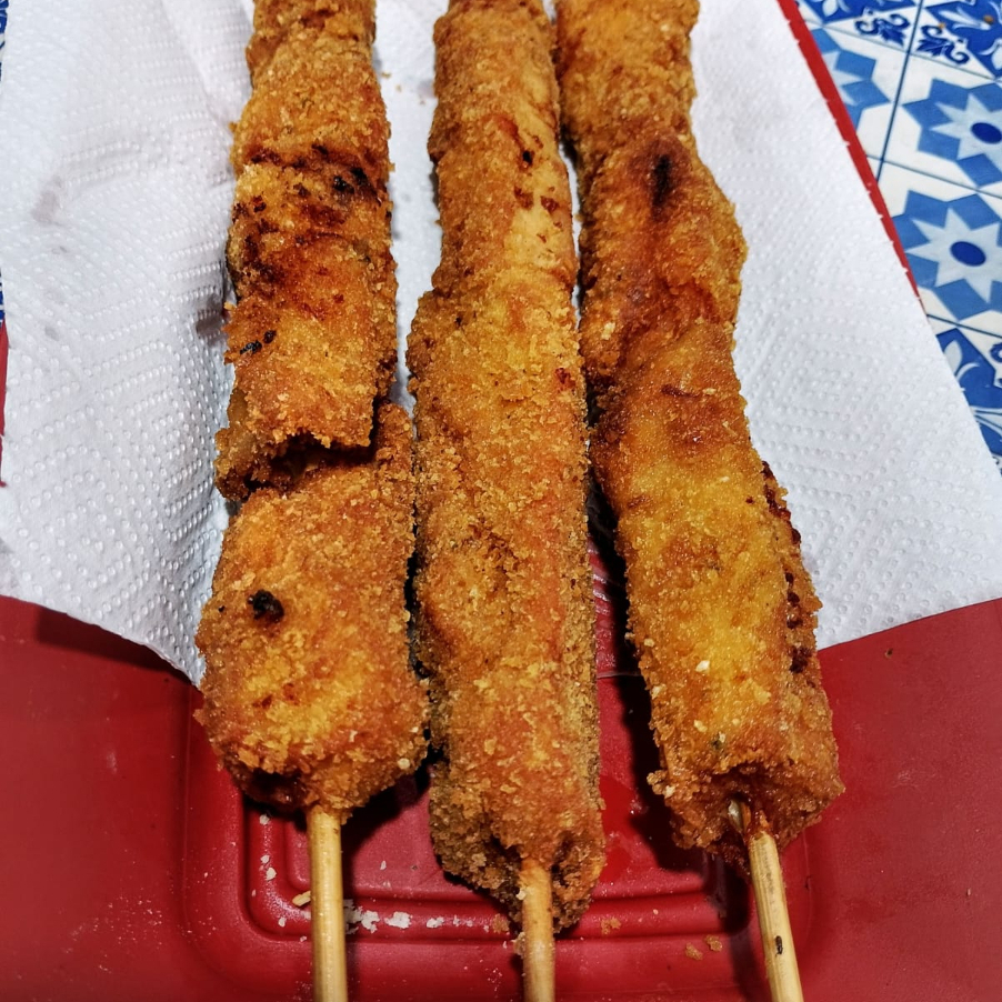 Massa frita crocante tamanho de feira com calabresa Fatiado e frita