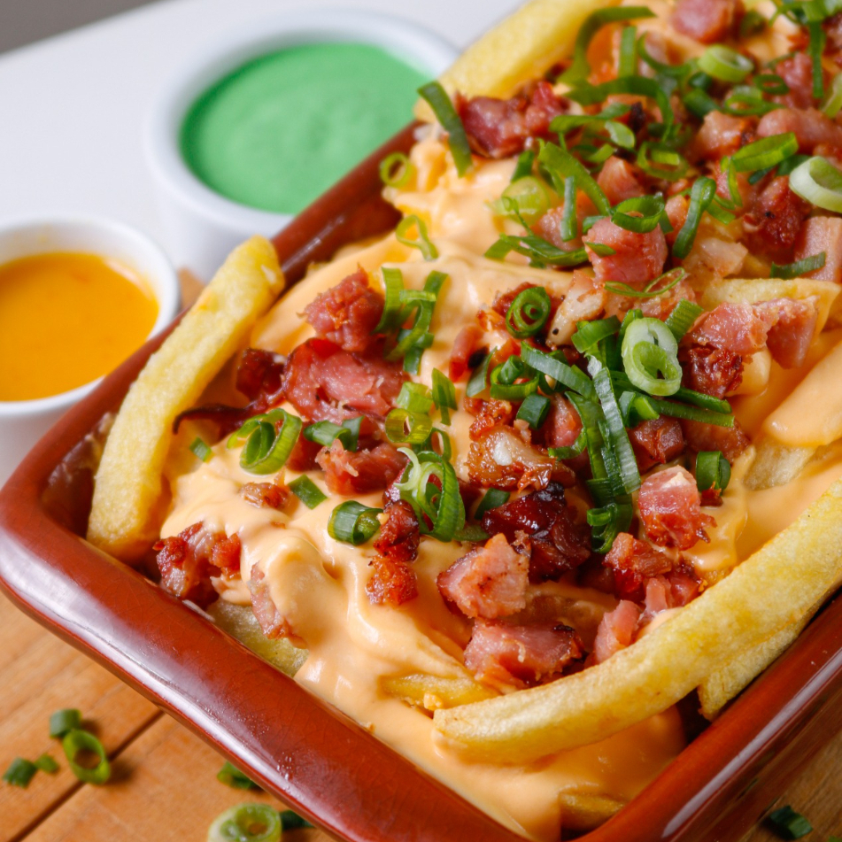 Deliciosa Batata Ultra com creme de Cheddar, Bacon em cubos, E nosso delicioso frango frito empanado e 2 tipos de molhos a sua escolha! Pesando quase 650g servindo 2 pessoas VEM QUE E BOM DE MAIS 🥰